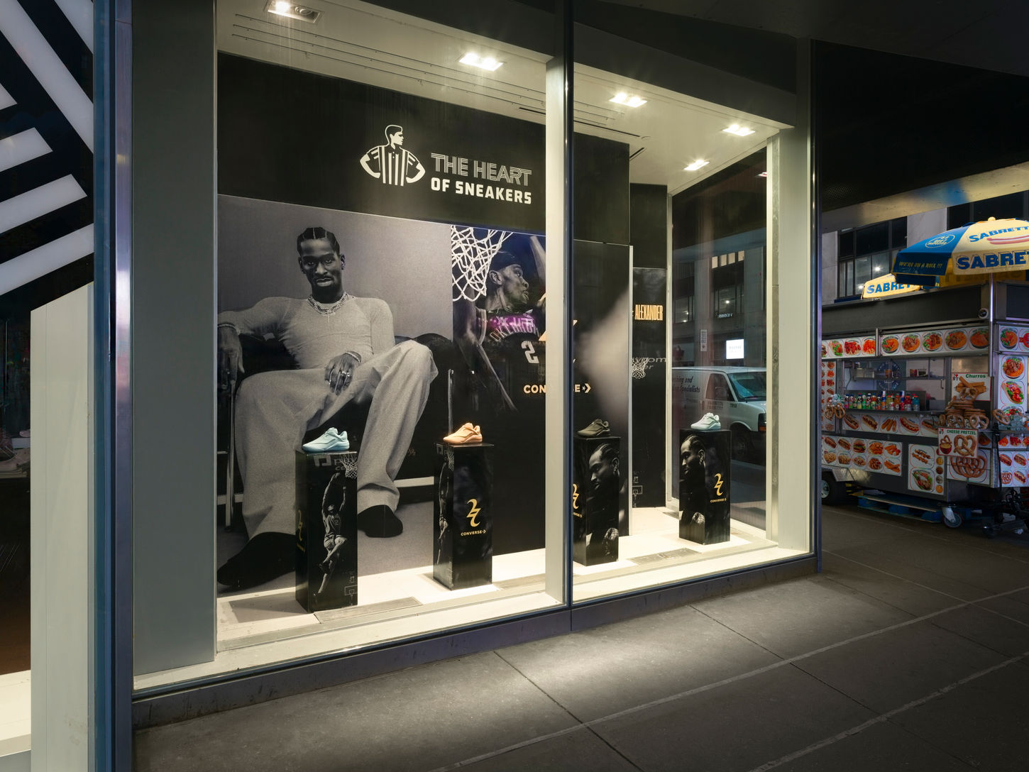 In collaboration with Converse for the launch of Shai Gilgeous-Alexander’s Shai 001, I partnered with the SGK Brand Experience team to design fixtures and graphics for retail environments nationwide. I led the creative implementation and built a flexible system for graphic application, supporting a successful and well-received release. As part of the Converse Shai 001 release, I also collaborated on developing a visual merchandising playbook to guide retail partners through setup and execution. The strategy prioritized clarity, detail, and a consistent visual direction across all touchpoints.